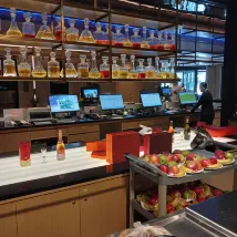 We were also grateful for the upgrade from a queen-size bed to a king-size bed, as it provided us with more space to sleep comfortably with two toddlers. Kids eat breakfast for free, and the food was excellent! The dumplings were a highlight, along with a variety of options including bacon, different egg dishes, baozi, porridge, egg tarts, cakes, bread, rice, and salads.