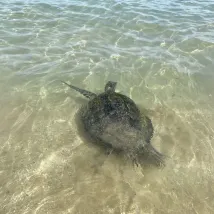 Täcket är fuktigt och det finns sköldpaddor på stranden, vilket är ganska unikt.
