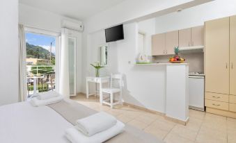 This property and staff were really sweet. We were in and out because it was a quick overnight stay. We had stayed in the Pelekas area for three nights, and unfortunately Benitses was just not for us. Very crowded and touristy. Sadly, although our room was non-smoking, it really smelled of cigarettes and there was an ashtray on our balcony table, so could’ve just been because ppl can smoke outside. I will say again, everyone was very sweet, communication was easy and quick, and besides the smoke, the room was spacious and clean.
