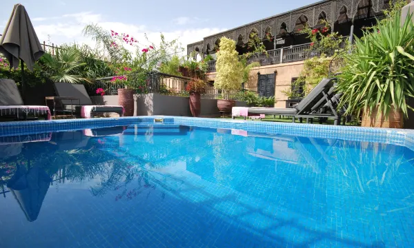 Petit riad dans une rue bien tranquille au coeur de Marakech à 20 minute de la Place Jemmaa el fnaa le dépaysement est total le personnel est super sympathique et gentil. Riad dans le respect de l'architecture Marocain; Le dépaysement est total. Une toute petite piscine et 3 à 4 transats en terrasse