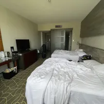 Cleanliness and hygiene is a problem. Saw a huge cockroach when I step into the door. When called the reception, first thing they say is to get someone to clean it up. Called again to request for a change of room, but they tried to push back though eventually give in to change the room. I wouldn’t really recommend this hotel because it seems that they do a lot of airline business, we are like peanut, booked two rooms, they can’t even put us on the same room when we first check in. It’s not like I book the room last min anyway. Very disappointed with the standard.
