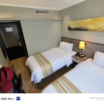 Platsen ligger i staden. Det finns ingen parkering där. Parkering i närheten kostar 120 rmb per 24 timmar. Inget kylskåp på rummet. Ingen is på hotellet. Rummen mycket trånga. Trevlig lounge med kaffe och te. Utsikten ut genom fönstret är skräp och vissa rum har inga fönster alls.