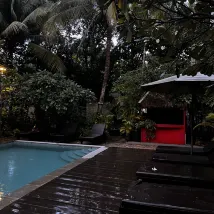 The room was booked for 3 people, however the amenities provided was only for 2 people including the towels and glasses, until I asked for extra. One of the staffs wasn’t very welcoming, but many others are friendly and easygoing. The environment is cozy. However, it’s sorted of failed advertisements where it’s said private pool, while it is a big pool open for all guests to the hotel.