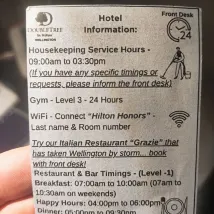It was such a lovely and pleasant stay at Hilton property. I would lov eto stay again when traveling to wellington in near future.
